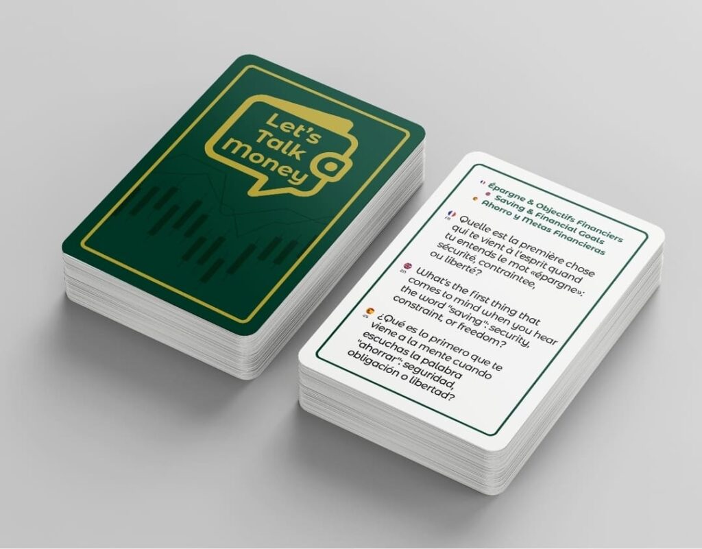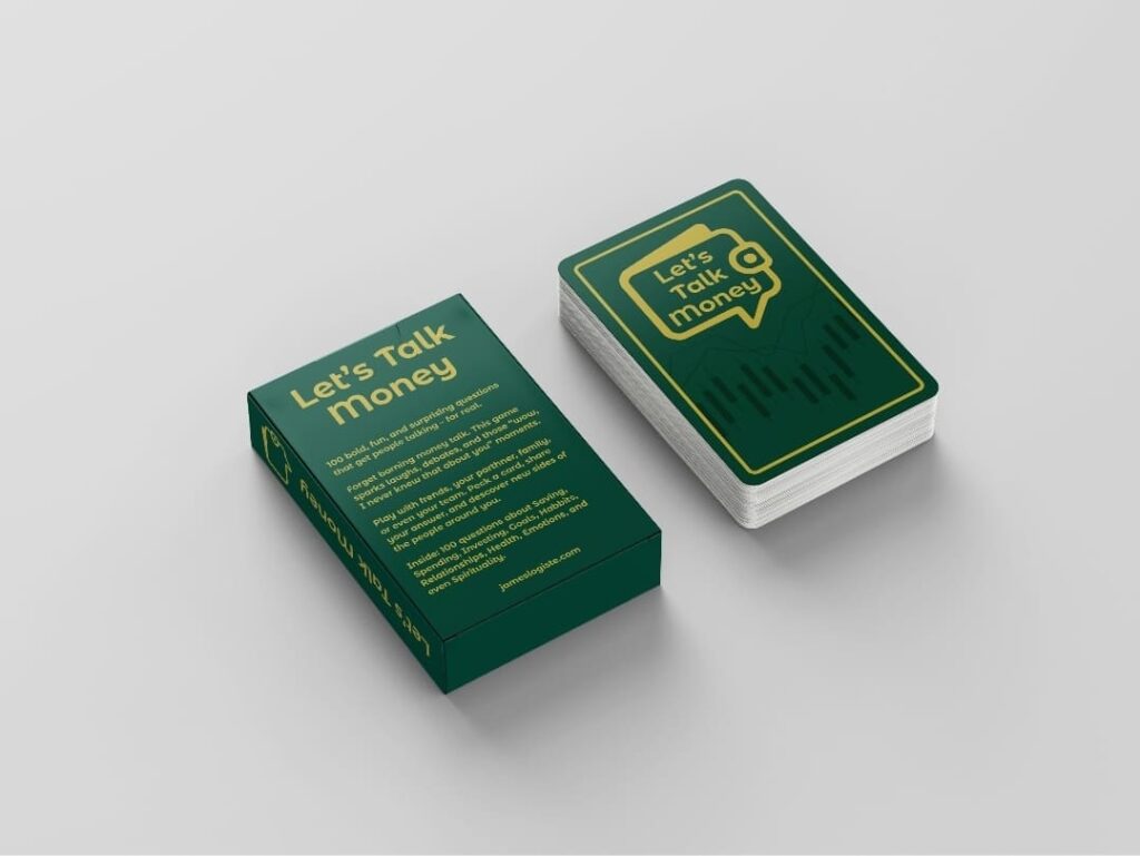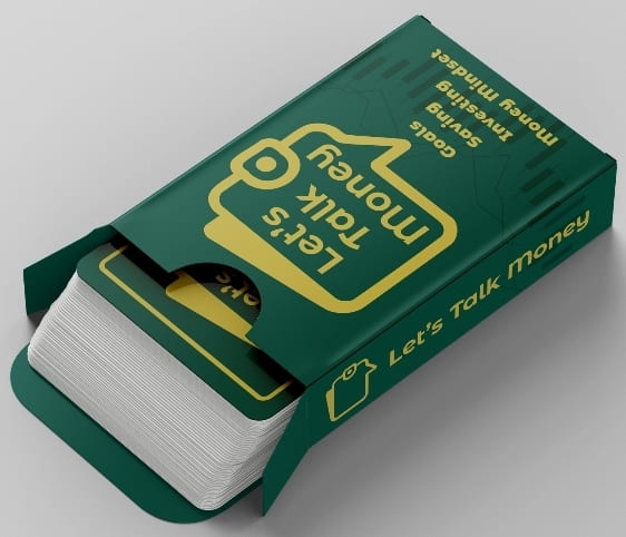 Let's Talk Money is a card game designed to spark engaging discussions about personal finance covering saving, investing, spending, goals, and mindset. Perfect for meaningful time with friends, family and colleagues, it makes learning about money fun and easy. Pre-order now for $19.99.